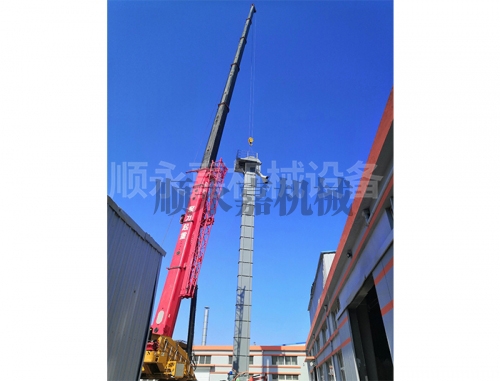斗式提升机的牵引构件有环链、板链和胶带等几种。环链的结构和制造比较简单,与料斗的连接也很牢固,输送磨琢性大的物料时,链条的磨损较小,但其自重较大。板链结构比较牢固,自重较轻,适用于提升量大的提升机,但铰接接头易被磨损,胶带的结构比较简单,但不适宜输送磨琢性大的物料,普通胶带物料温度不超过60°C,夹钢绳胶带允许物料温度达80°C,耐热胶带允许物料温度达120°C,环链、板链输送物料的温度可达250°C。